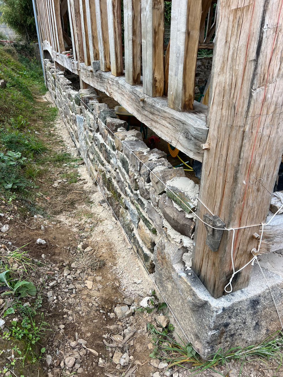 Début d’un nouveau projet pour les Ateliers Magnus, avec la réalisation complète de la maçonnerie de soubassement en pierre d’une maison à colombages entièrement neuve.